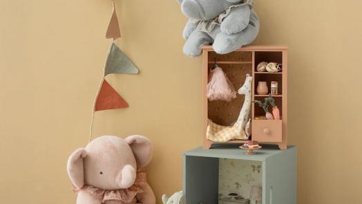 Dieser Maileg Elefant ist aus dem weichsten Plüsch gefertigt, was ein schönes Griffgefühl und die wärmsten Umarmungen ermöglicht. Er kann aus eigener Kraft sitzen, da er Bohnen im Boden hat.